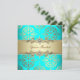 Convites Festa Elegante em Damasco Azul Turquesa e Dourado