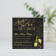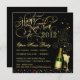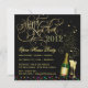 Convites abertos da festa em casa da véspera de Ano Novo -- Elegante e corajoso, mas divertimento e festivo no espírito -- Roteiro extravagante do ouro com redemoinhos na moda corajosos e motivo do champanhe no fundo preto. Estes na moda e design sofisticado podem facilmente ser personalizados para celebrações formais ou ocasionais do feriado. Apenas incorpore sua informação para criar seu próprio original e na moda personalizado convida para todo o evento especial do ano novo. Selos postais, cartão, botões, etiquetas e presentes de harmonização disponíveis na galeria.