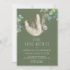convites de festas de aniversários divertidos de "Venha conosco" com uma ilustração aquática de uma preguiça pendurada em uma árvore. Cartões simples e bonitos com letra branca, escrita à mão, num fundo verde escuro. O verso apresenta um padrão de madeira. As cores de fundo podem ser alteradas, se desejado, usando a ferramenta design.