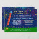 Celebrar o Dia da Independência com estes humorísticos convites de festas de teatro. Estes convites brancos mostram um foguete prestes a ser lançado no céu, com fogos de artifício e luzes atrás dele. O texto de cima diz: "Não bata até você se mexer!" O resto do texto (exceto as letras RSVP) pode ser facilmente personalizado através dos campos modelo. Estes convites são perfeitos para o seu biscoito de churrasco de 4 de julho ou besta divertida. As costas têm um padrão colorido de fogos de artifício. "Personalizar" se quiser fazer alterações mais detalhadas.