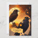 Convite para festa de Halloween, com um gato preto giro numa cena caótica de cemitério, com uma vela festiva para perseguir os espíritos de mau. No verso, entretanto, os corvos estão se perguntando se vão conseguir o seu tratamento...? A nuvem de palestra no verso consiste em várias formas e você pode reorganizá-las ou excluí-las no editor avançado.
