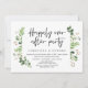 Convite de casamento com tema de folhagem verde de Jardim de Verão em letra cursiva preta moderna (Festa Feliz para Sempre). É perfeito para o seu casamento / festa de celebração pós-casamento. Adicione seus detalhes na fonte / letra preta correspondente.