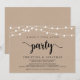 Linda festa Felizes para Sempre, cartão de anúncio de casamento / convite de casamento fugitivo, em kraft rústico de fazenda, design de luzes de corda. Isto é perfeito para o seu casamento e festa de celebração pós-casamento. Adicione seus detalhes em fonte / letra correspondente.