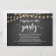 Linda festa Felizes para Sempre, cartão de anúncio de casamento / convite, em quadro de giz de fazenda rústica, design de luzes de corda. Isso é perfeito para o seu casamento e festa de celebração pós-casamento. Adicione seus detalhes no tipo de letra correspondente.