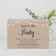 Linda festa Felizes para Sempre, cartão de convite / anúncio de casamento Elopement, em Kraft rústico da fazenda, design de luzes de corda. Isso é perfeito para o seu casamento e festa de celebração pós-casamento. Adicione seus detalhes em fonte / letra correspondente.