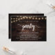 Linda festa Felizes para Sempre, cartão de anúncio / convite de casamento às escuras, em madeira de fazenda rústica, projeto de luzes de corda. Isto é perfeito para o seu casamento e festa de celebração pós-casamento. Adicione seus detalhes na fonte / letra correspondente.