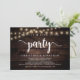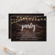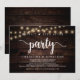 Linda festa Felizes para Sempre, Anúncio de Casamento às Pressas / Convite de casamento, em design de madeira escura rústica moderna, com luzes de corda de casa de campo. Isto é perfeito para o seu casamento e festa de celebração pós-casamento. Adicione seus detalhes na fonte / letra correspondente.