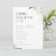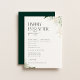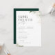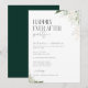 Convite para Festa Felizes para Sempre na Floresta Selvagem com folhagem. Tipografia na cor preta com fundo branco na frente e verso na cor esmeralda coordenada.