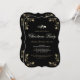 Convite de festas de Natal, preto e dourado, com balas de ouro e sinos de Natal. Personalize facilmente este convite de Natal com os detalhes da sua festa. Esta forma cortada adiciona um toque especial extra e um aspecto mais festivo.