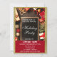 Companhia festiva anual de férias convite de festas de Natal com uma brilha esparsa de ouro, brilha a borda e os presentes vermelhos com arcos em torno de um quadro negro em madeira marrom rústica. Os detalhes da festa são escritos em branco com um fundo vermelho brilhante. Este é um feriado perfeito/ Natal/ convite de inverno!