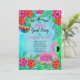 Prepare o seu maiô! Chegou a hora de "Flamingle" na cola flutuante flamingo entre as frondas palmeiras tropicais e flores de hibisco tropicais nesta design do Partido Formando. Seus chinelos e sua bola de praia já estão lá esperando por você. Ilustrações originais e design por Designs Holiday Hearts (todos os direitos reservados).