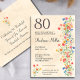 80 Floral Aniversário Selvagens de 80 Anos Convite de festas. Celebre um marco especial com este elegante convite de 80, projetado para uma mulher maravilhosa. Apresentando um '80' ousado no topo e um delicado design floral em tons de aquarela, este convite combina lindamente sofisticação e charme. Perfeito por reunir os entes queridos para honrar uma ocasião verdadeiramente memorável. Adicione todos os detalhes do evento para criar uma manutenção exclusiva e na moda. Aproveite!