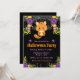 Gato de laranja, design Floral de Halloween com fundo bolinhas preto e brilho preto
