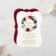 Elegante Watercolor Burgundy Marsala Floral Wreath Convite de festas de Natal. Inclui belos rosas e verde botânico. Estilo do suporte. Dourado Script.