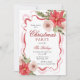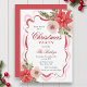 Festa Floral de Natal Elegante Coquette apresenta um design de Natal chic com buquês de flores de inverno de cor d'água com verde em uma faixa vermelha e rosa. Adicione suas informações personalizadas sobre o Convite de festas de Natal no centro. Perfeito para festas de Natal com familiares e amigos. Criado pelo Evco Studio www.zazzle.com/store.evcostudio