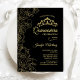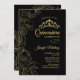 Convite de aniversário Dourado de Quinceanera Floral Preto. Design minimalista moderno com desenhos botânicos em destaque e letra de script de tipografia. Simples trendy convida cartão perfeito para uma na moda fêmea de comemoração de 15. Pode ser personalizado para qualquer idade. Impressos convites Zazzle ou modelo de impressão digital instantânea para download.
