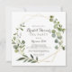 Este convite de festas geométrico de chá de panela marrom-dourado é perfeito para um chá de casamento rústico. A design apresenta lindas folhas verdes pintadas manualmente em um fundo castanho, enfeitando um quadro geométrico dourado.