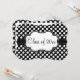design de fundo de bolinhas branca na moda e, com fita preta e forma de quadro branco. Um retro bonito pinta o estilo de moda, formatura feminina ou convite de festas de casa aberta. Copyright © www.CustomInvitesOnline.com