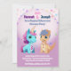Reúna todos os seus convidados para celebrar uma festa de aniversário dupla com este convite de festa de unicórnio e dinossauro fofo. Adicione os nomes e idades dos seus filhos a esta divertida equipe de unicórnio e dinossauro ilustrados desenhados à mão para personalizar seu convite de festa e criar uma festa mágica e única que seus filhos certamente irão amar!