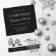 Um elegante Convite de festas Jante de Natal preto e branco com Enfeites de natal prateados.