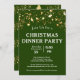 Convite de festas de janto de Natal com fundo verde. Estrelas ouros na frente e estrelas e padrão das árvores na parte de trás da placa plana. Personalize este modelo com suas informações. Festa de troca de presentes e/ou traga um prato. Você decide na sua informação. Mais desse design está na minha loja de Designs Sandy M (https://www.zazzle.com/store/sandyspider) na Categoria Feriados. Este design pode ser transferido para qualquer produto. Veja todas as minhas lojas em https://bit.ly/SandyspiderStores