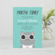 convite de aniversário Legal em turquesa com uma cinza vestindo óculos escuros brancos, confete branco e FESTA TIME escrito em letras grandes de caligrafia preta.