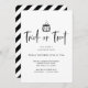 Anuncie a sua festa do Dia das Bruxas e convide os seus convidados com o nosso design de convite para as festas do Dia das Bruxas moderno e na moda. O design apresenta um caldeirão preto-e-branco desenhado em um estilo minimalista simples. "Trick or Treat" é exibido em uma tipografia de estilo de script de escova de na moda e tendência, em preto, com os detalhes de eventos exibidos em um layout simples para criar um design de convite para as festas modernas e modernas de halloween. O verso apresenta um design de faixa diagonal moderna, preto e branco. Você pode personalizar o tamanho do texto, a cor do texto, a fonte e o layout para sua preferência de design pessoal.