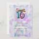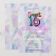 Uma festa moderna, chique e glamorosa de Sweet 16 com neon em fundo holográfico.