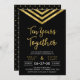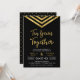 Convite moderno de aniversário de 10 anos com um elegante chevron geométrico e as palavras "Dez Anos Juntos" em dourado falso contra um fundo preto. O cartão inclui um verso com padrão correspondente. Confira os itens correspondentes aqui http://www.zazzle.com/collections/modern_faux_gold_chevron_celebration_collection-119531050277382712?rf=238364477188679314