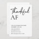 Traga risadas para a mesa nesta temporada com este Convite de Ação de Graças Divertido, apresentando a frase ousada e atrevida “Thankful AF” (Muito Grato). Com um layout minimalista limpo e tipografia moderna, este design equilibra perfeitamente o humor com o estilo.