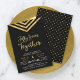 Convite moderno de aniversário de 50 anos de casamento com um elegante chevron geométrico e a frase "Cinquenta Anos Juntos" em dourado falso sobre um fundo preto. O cartão inclui um verso com padrão correspondente. Confira outros itens correspondentes aqui http://www.zazzle.com/collections/modern_faux_gold_chevron_celebration_collection-119531050277382712?rf=238364477188679314
