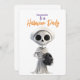 O convite do Partido das Bruxas Modernas com a ilustração do NA MODA SKELETON, de olhos grandes, sobre fundo branco. Simples, moderno e não assustador.