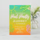 Este convite é inspirado em placas de Neon com diferentes cores tropicais usadas no fundo para dar a sensação de diversão e vibrações frescas de verão