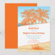 Celebre uma festa de praia com este adorável design desenhado à mão, apresentando coqueiros balançando contra uma cena de praia em aquarela. A parte de trás apresenta uma cor laranja profunda e rica que complementa o design. Perfeito para qualquer festa de praia!