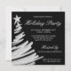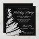 Convites de prata e pretos da festa de Natal. Um convite moderno da festa natalícia que caracteriza uma árvore de Natal de prata cobriu com uma estrela. Personalize facilmente com sua informação de evento.