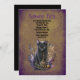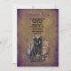 Qualquer boa bruxa tem seu familiar e muitas vezes é um gato preto. Uma representação requintada de um gato negro em uma atmosfera pervertida em um passado rústico envelhecido é o toque perfeito para este convite para a festa de Halloween. Todas as informações de que seus convidados precisarão podem ser personalizadas para ajustado de suas necessidades. O verso desse convite é preto com a imagem de três garrafas de poção de bruxas.