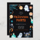 Um convite de festas divertido no Halloween com um quadro temático de fantasmas, aranhas, poções, um gato negro e outros clássicos do Halloween. Simples e alegre, ele colocará um sorriso nos rostos das pessoas.