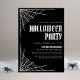 O convite do partido moderno Halloween, que inclui teias de aranha nas esquinas do design com "Festa de Halloween", apresentado em tipografia branca, com letra negra. Personalize o convite para a festa do Dia das Bruxas preto e branco com os detalhes do seu partido.