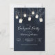 Convites de festa no quintal com jarros de vela pendentes e céu noturno cheio de estrelas celestiais. Ótimo para uma formatura, aposentadoria, aniversário, chá de bebê, festa de noivado ou qualquer festa ao ar livre no quintal! Fundo azul escuro de aquarela com estrelas espalhadas.