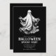 Um convite assustador para uma festa de Halloween com um fantasma preto e branco. Verifique a coleção correspondente para COORDENAR ITENS. Arte original de PUPSIKU STUDIO. Produtos exclusivos 100%.