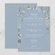 Um convite de festa noturna de casamento com flores silvestres em aquarela que emoldura os detalhes da celebração do seu casamento em tipografia branca elegante em um fundo azul desbotado elegante. Criado por Thisisnotme