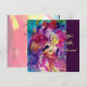 Nocturno veneziano colorido com um caráter expressivo e romântico: violinista caprichoso com fantasias cor-de-rosa brilhantes e plumadas e uma coruja engraçada sob a luz da lua, com uma linda rosa vermelha dourada no verso do cartão. Pintura em aquarela em cores vermelhas, verdes, azuis e amarelas brilhantes, faíscas douradas, inspirada em Piero (Pierrot), Comédia da Arte (Commedia dell'arte) e Carnaval de Veneza. É um belo cartão de anúncio para feriados, festas à fantasia de Mardi Gras, ocasiões especiais, festas de aniversário infantil, festa de 16 anos, baile de máscaras de Ano Novo, Dia dos Namorados, aniversários, reuniões, praticamente qualquer evento que você deseje!