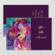 Noturno veneziano colorido com um caráter expressivo e romântico: violinista caprichoso com fantasias rosa fúcsia cintilantes e penas e uma coruja engraçada ao luar. Pintura em aquarela em cores vermelhas, verdes, azuis e amarelas brilhantes, faíscas douradas, inspirada em Pieron (Pierrot), Comédia da Arte (Commedia dell'arte) e Carnaval de Veneza. É um belo cartão de anúncio para feriado, festas à fantasia de Mardi Gras, ocasiões especiais, festas de aniversário de crianças, festa de 16 anos, baile de máscaras de Ano Novo, Dia dos Namorados, aniversários, reuniões, praticamente qualquer evento que você deseje!