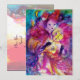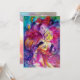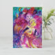 Nocturno veneziano colorido com um caráter expressivo e romântico: violinista caprichoso com fantasias rosa fúcsia cintilantes e penas e uma coruja engraçada sob a luz da lua, com uma linda rosa vermelha dourada no verso do cartão. Pintura em aquarela em cores vermelhas, verdes, azuis e amarelas brilhantes, faíscas douradas, inspirada em Piero (Pierrot), Comédia da Arte (Commedia dell'arte) e Carnaval de Veneza. É um belo cartão de anúncio para feriados, festas à fantasia de Mardi Gras, ocasiões especiais, festas de aniversário infantil, festa de 16 anos, baile de máscaras de Ano Novo, Dia dos Namorados, aniversários, reuniões, praticamente qualquer evento que você deseje!