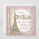 Convite de aniversário de Paris Sweet Sixteen lindo com pérolas cor-de-rosa e Torre Eiffel dourada. Este convite de festa de aniversário de Paris cor-de-rosa e dourado é facilmente personalizado para o seu evento, basta adicionar seus detalhes no estilo de letra e cor, texto e layout de sua escolha.