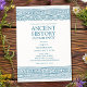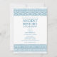 Convite de aniversário da Festa da Toga inspirado na Grécia Antiga elegante em azul com elementos de pedra. Perfeito para o seu evento temático da Grécia Antiga ou Roma Antiga!