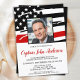 Celebre sua aposentadoria e convide amigos e família para sua aposentadoria de bombeiro com este Thin Red Line Firefire Invitation - design americano de bandeira americana em cores de bandeira de bombeiro, design angustiado. Personalize com fotos, nome, departamento de incêndio, local de endereço e detalhes de rsvp. Este convite para aposentadoria de bombeiros pode ser usado para a graduação de bombeiros, simplesmente mude o texto ao personalizar.Consulte nossa coleção para combinar presentes, favoritos para festas e suprimentos de aposentadoria de bombeiros. COPYRIGHT © 2020 Judy Burrows, Black Dog Art - Todos Os Direitos Reservados. Convite de festas de Fotografias Personalizadas de Retirada de Bombeiros