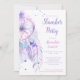 Uma bichinha, convite de aniversário de madeira para raparigas com um tema Sweet 16, com um apanhador de sonhos pintado em aquarela moderna e caprichosa, uma simples tipografia e um padrão de penas pintadas à mão no dorso, sobre um fundo roxo e texturizado.