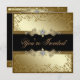Elegante, preto e dourado, convite de festas formal de modelo. Este belo convite de festas preto e dourado é facilmente personalizado para o seu evento, simplesmente escolhendo o botão "Personalizar!" para começar a adicionar detalhes do evento, estilo de fonte, tamanho de fonte e cor e texto. Observe que todos os adesivos, cartões e designs de convite que você encontrará no Zazzle são gráficos impressos sem joias reais, arcos, levantados, gravados, ou peças ou peças adicionadas.