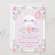 Este convite de aniversário super adorável apresenta uma ilustração fofinha de um coelho bebê segurando um balão rosa cercado por flores de primavera aquarela em rosa, roxo, azul e branco. O texto é totalmente personalizável. Para alterar o estilo da fonte, as cores ou o posicionamento do texto, basta clicar no botão "Clique para personalizar mais".